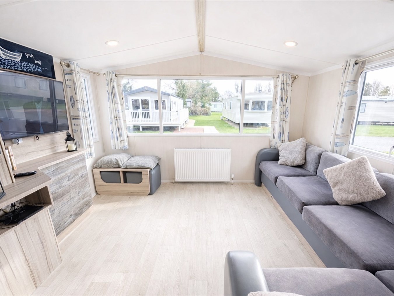 Modern, homely 3-bedroom mini lodge. Set in the sought-after Parklands, on the inner row overlooking the park area. A quiet cul-de-sac with no through traffic.
