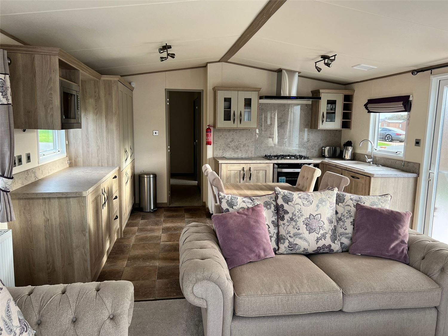 Set in the exclusive gated area of Fairways, with uninterrupted views of the lake, this 3-bedroom mini lodge boasts a modern interior with a private hot tub.