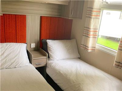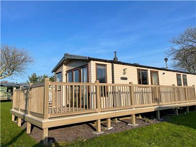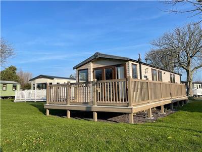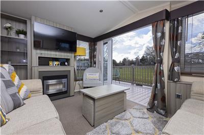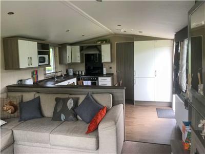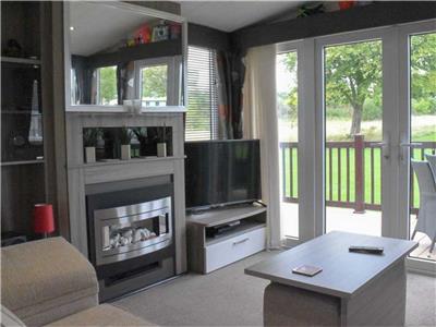 Set in the sought-after area of Parklands, no 17 is a prestige 3-bedroom caravan with uninterrupted views of the grassed playing field. This area is a minute's walk away from the entertainment and swimming pool. Quiet and relaxing on an end plot. Large gated veranda from the double doors, grassed areas surrounding the property and parking on the driveway next to the property.
